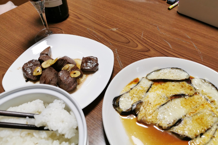 しかしそれでも独りメシは快適の一言。お手製のナスグラタンでかっ込む白いメシの美味いこと。