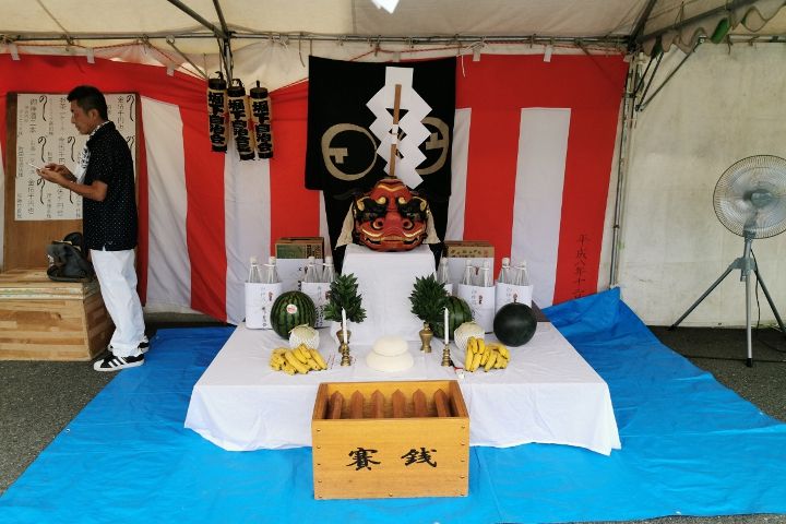 17時に再度会場に訪れると、テント内には獅子頭が飾ってありました。