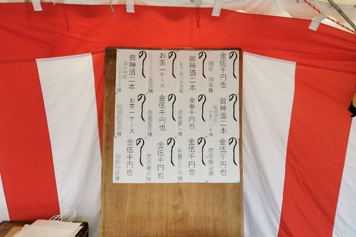 他にも有志の方々からの寸志も。内容が控えめなのは祭りの規模が小さいからか(笑)。