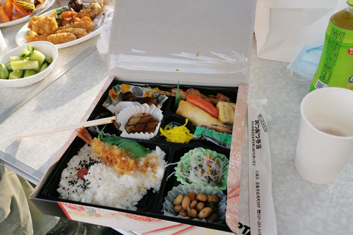 配られた折詰弁当を食します。元々会場で早めに弁当が出るというのは聞いていたので、ちゃんと腹は空かせてある。