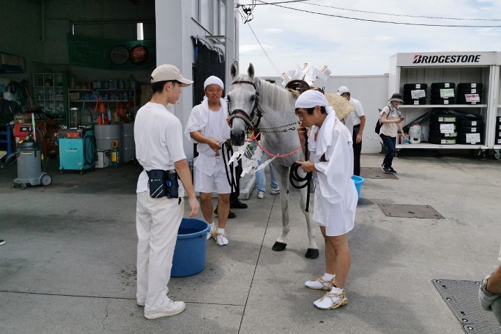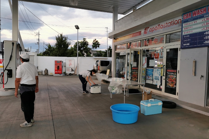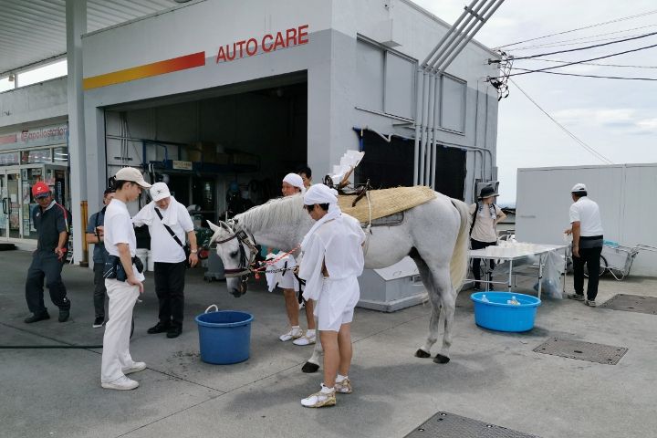 続いて2日目。本日のK’azuの持ち場である町内のガソリンスタンドに行くと、どこから連れてきたのか一頭の馬がいました。