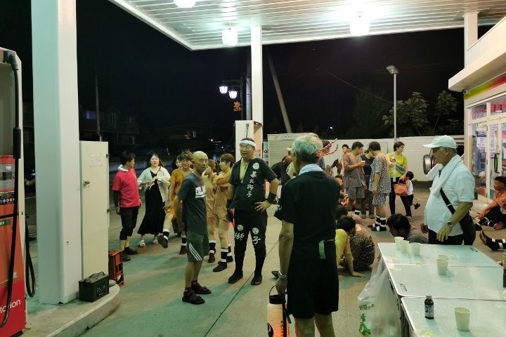 夜になっても全然気温が下がらないので、飲み物が売れる売れる…。ほぼ動いていない俺達でも暑いのに、重たい暴れ獅子担いで町内を練り歩くのはかなりキツいと思う。