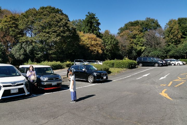 引き返して到着したのは広大な墓地公園である嶺公園の駐車場。あと1kmならここにクルマを置いて歩いて行くことに。