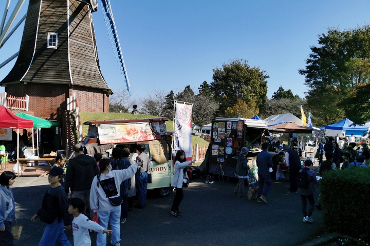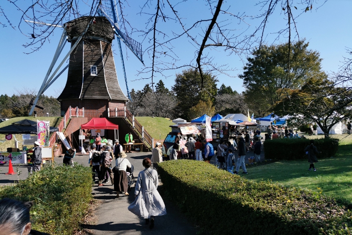 シンボルのオランダ型風車の周辺には色々な店が軒を連ねています。