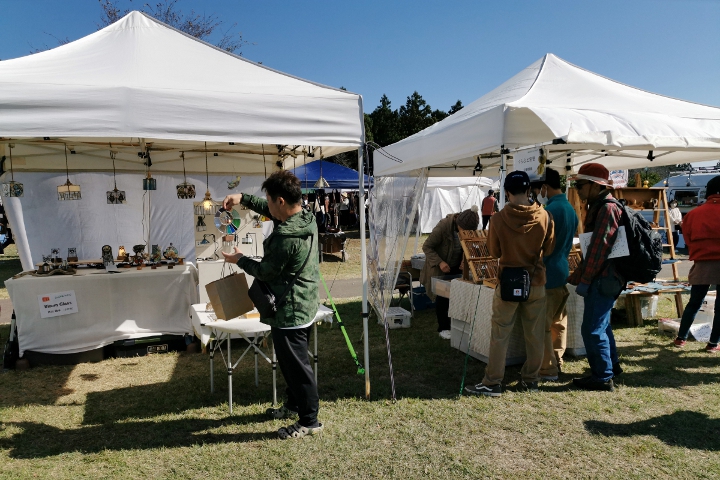奥の芝生広場に移動すると、多くのテントがありました。なるほど、このエリアでクラフト作家さんが出店しているわけですね。