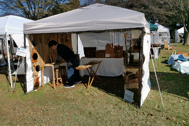 こちらは先日お邪魔した木まま工房さんのテント。どうやら社長は席を外しているようで、奥様が独りで店番をしていました。