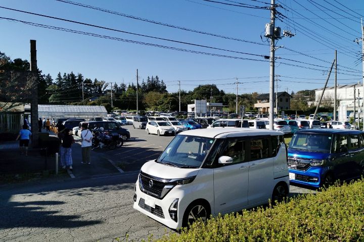最初の直売所まで戻ると、まだ入れないクルマで溢れていました。スゲーな…。
